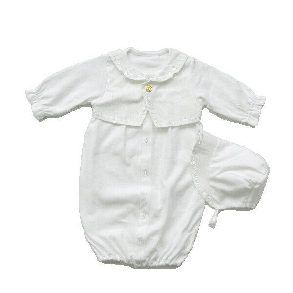 ・素材 綿100% スムース・日本製・サイズ 50-70cm(新生児-6ヶ月)・カラー オフ白●男の子を意識したデザインのカミングホームドレスです。